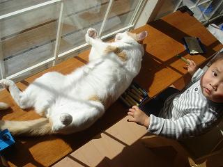 ところで、最後の写真のリュウトくんが手にしているのはクレヨン?目の前に丁度イイ真っ白なキャンバスが!(ちょっと描きづらそう?)しろね兄さんのお腹のその後…気になります(笑