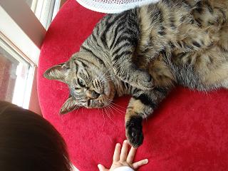 ショコラお気に入りのじゃらしを持ってブンブンするリュウト