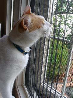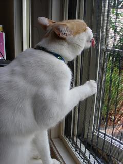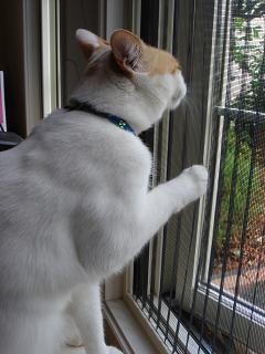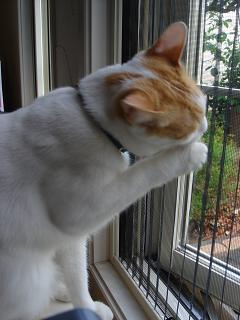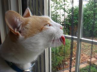 網戸をなめる、しろね。