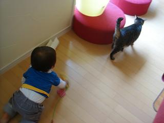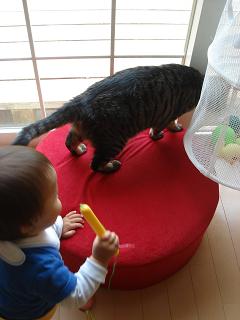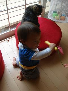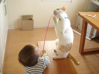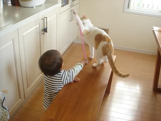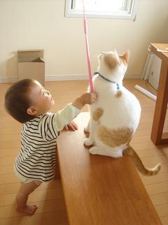 ショコラお気に入りのじゃらしを持ってブンブンするリュウト