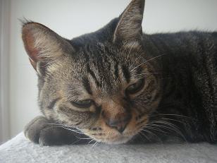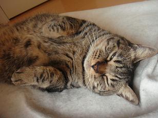 昼寝中だったショコラさん、びっくりーー。