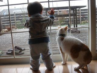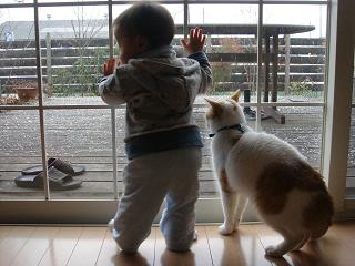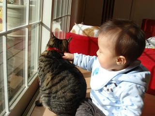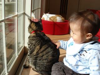 日課の子守にゃ。