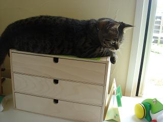 ショコラがいるのは、小物入れの上