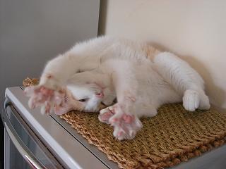今日のしろねさんは、冷蔵庫上から降りてきて、