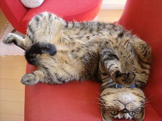 さて、ショコラさんは、先日こんな格好でお昼寝を。