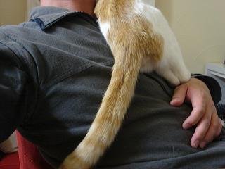 (ショコラは、尻尾をたらすのではなく、こんな風にお腹に向けるのが好きです